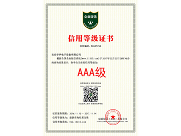 企业被定为3A级信用等级企业我公司被评定为AAA级信用等级企...